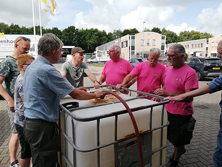 Dinsdag 22 juli is de kuub water met daarin een fietszadel de vriescel bij Veldboer Eenhoorn ingegaan. Onder het toeziend oog van mensen van Auxili-ja! en van Stichting Fietsenactie uit Zwaag is de bak gevuld met water en is het zadel erin gehangen. Dat was nog even een dingetje omdat het zadel niet bleef hangen maar ging drijven. Verzwaard met wat stenen is het uiteindelijk gelukt en is de bak de vriescel ingereden. Daar heeft het water tot vrijdag 15 augustus de tijd om ijs te worden. Tegen het einde van die middag wordt de kuub ijs naar Wervershoof gebracht en daar in de tuin van de pastorie neergezet. En dan is het wachten op het moment dat het fietszadel de bodem van de bak zal raken. Voor een bedrag van 5 euro kunt u de tijd gaan raden waarop dat volgens u zal gaan gebeuren. De opbrengst zal gaan naar de eerder genoemde stichting uit Zwaag. Naast een geldbedrag zijn er dit keer nog een tweetal leuke prijzen te winnen. Daarover later meer.